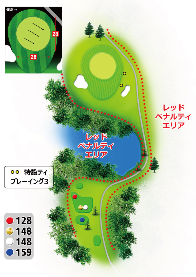 各ティグラウンドからグリーンエッジまで-16Yで計算。